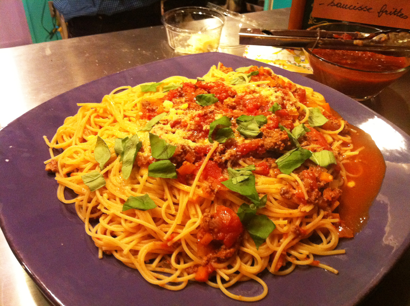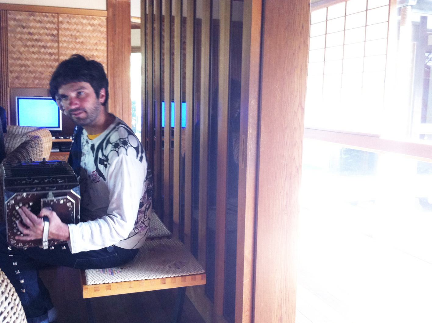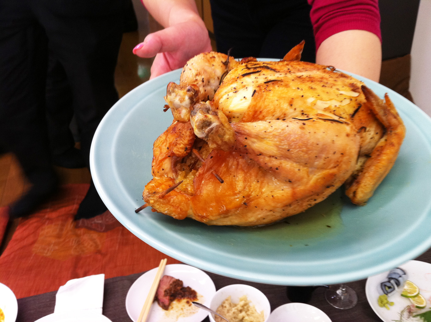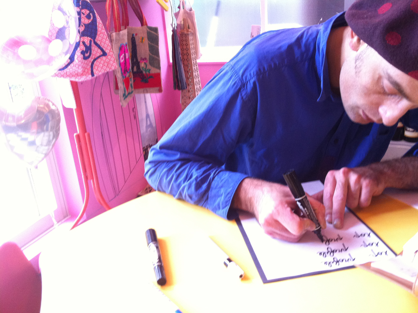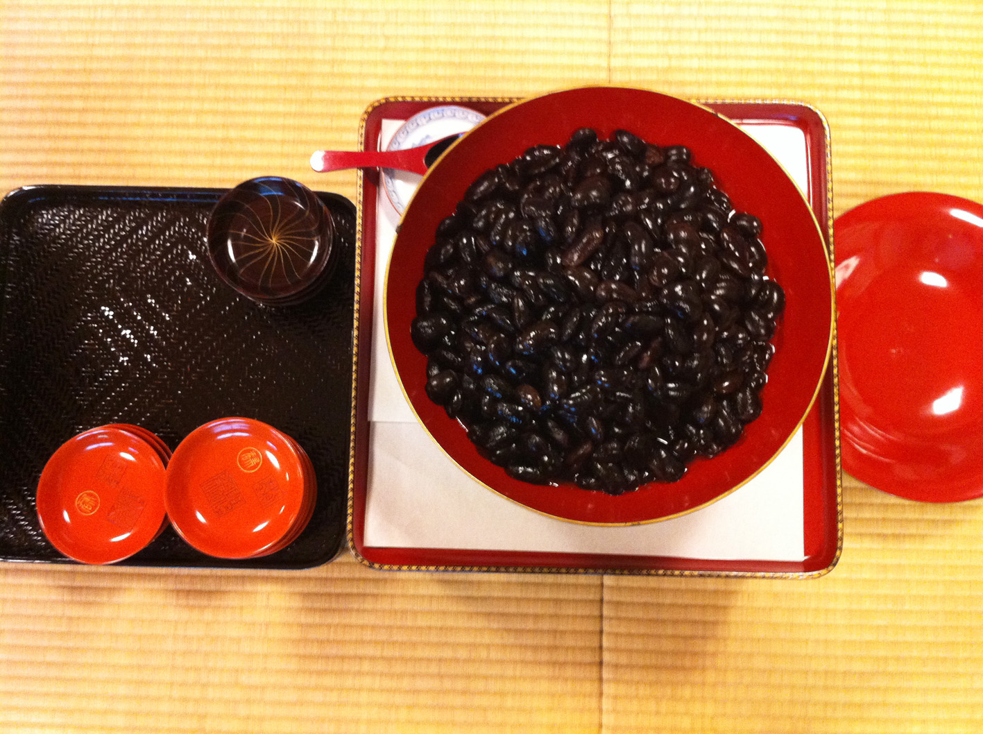 ご主人も新聞紙でテーブルをつくって下さいました。