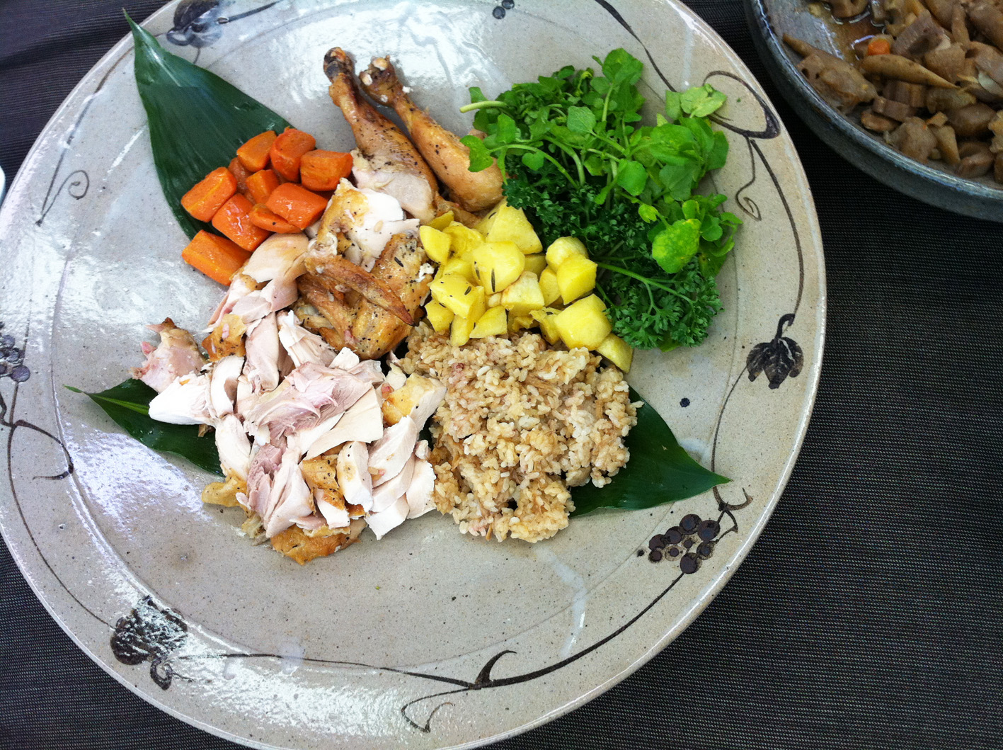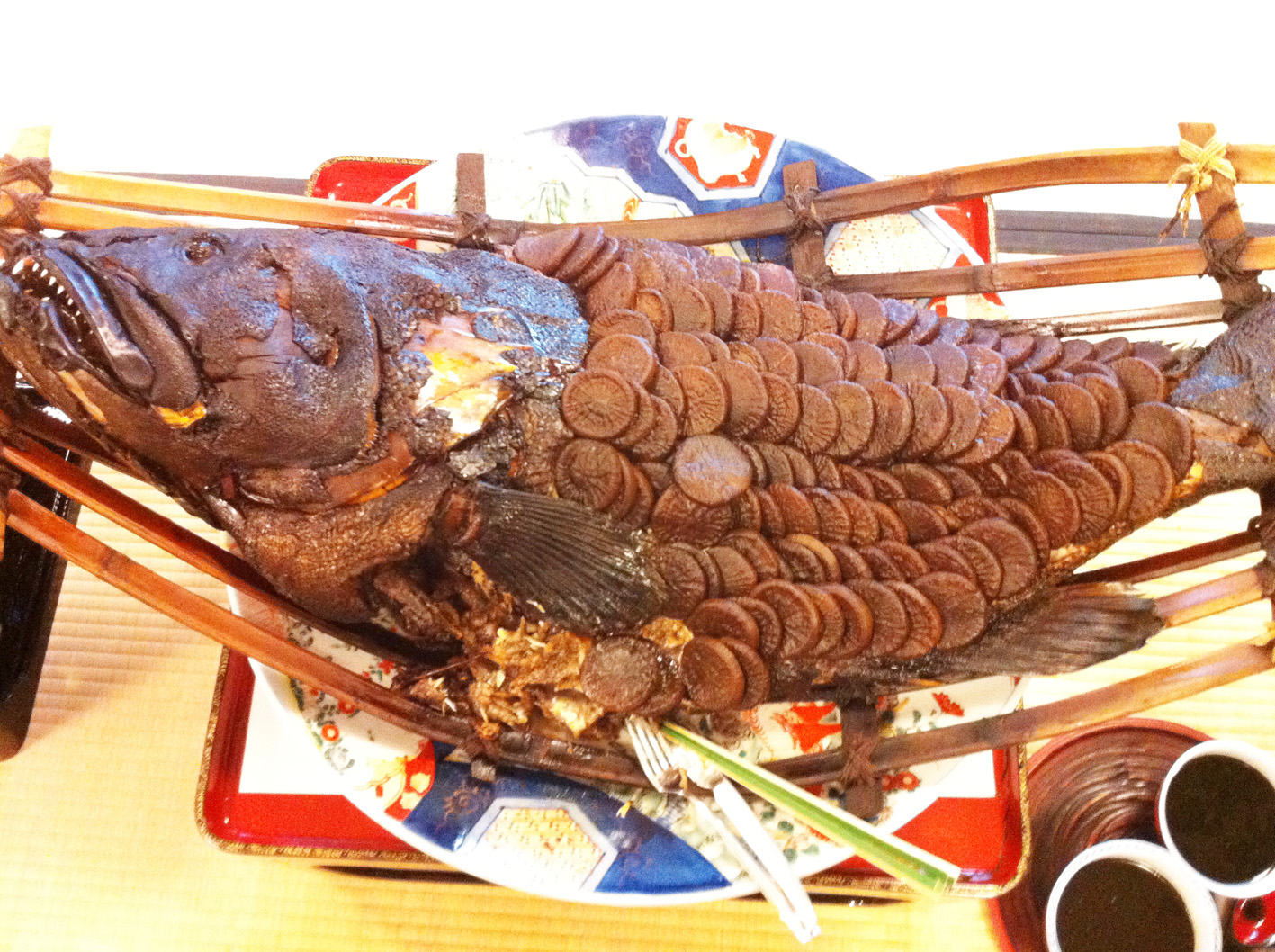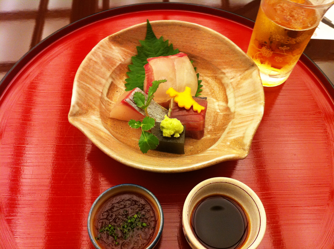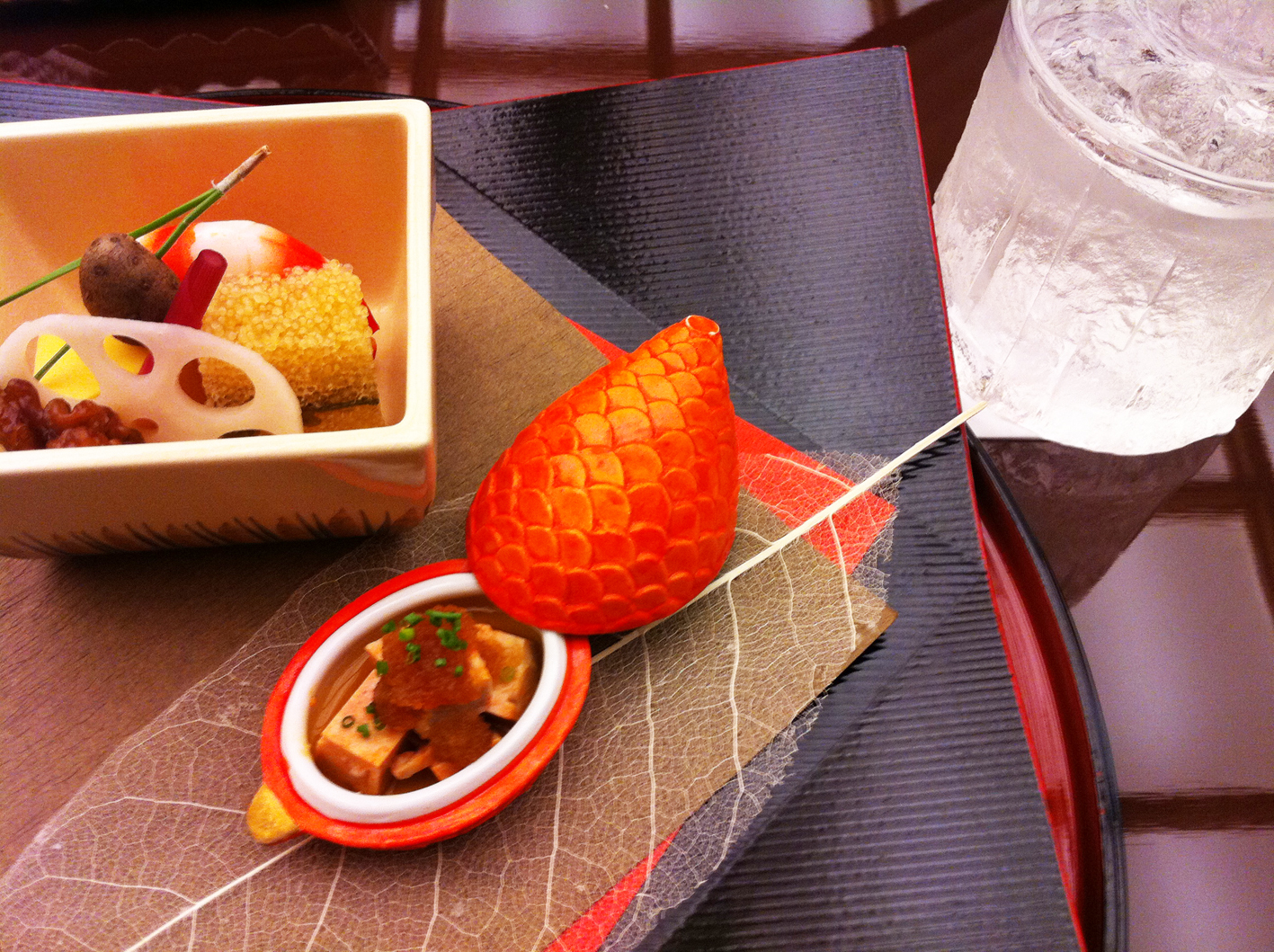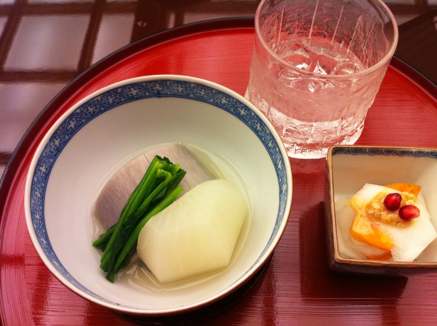 その他、椀やお肉や、いろいろなお料理を頂いて、やはり最後は、with 焼酎です。