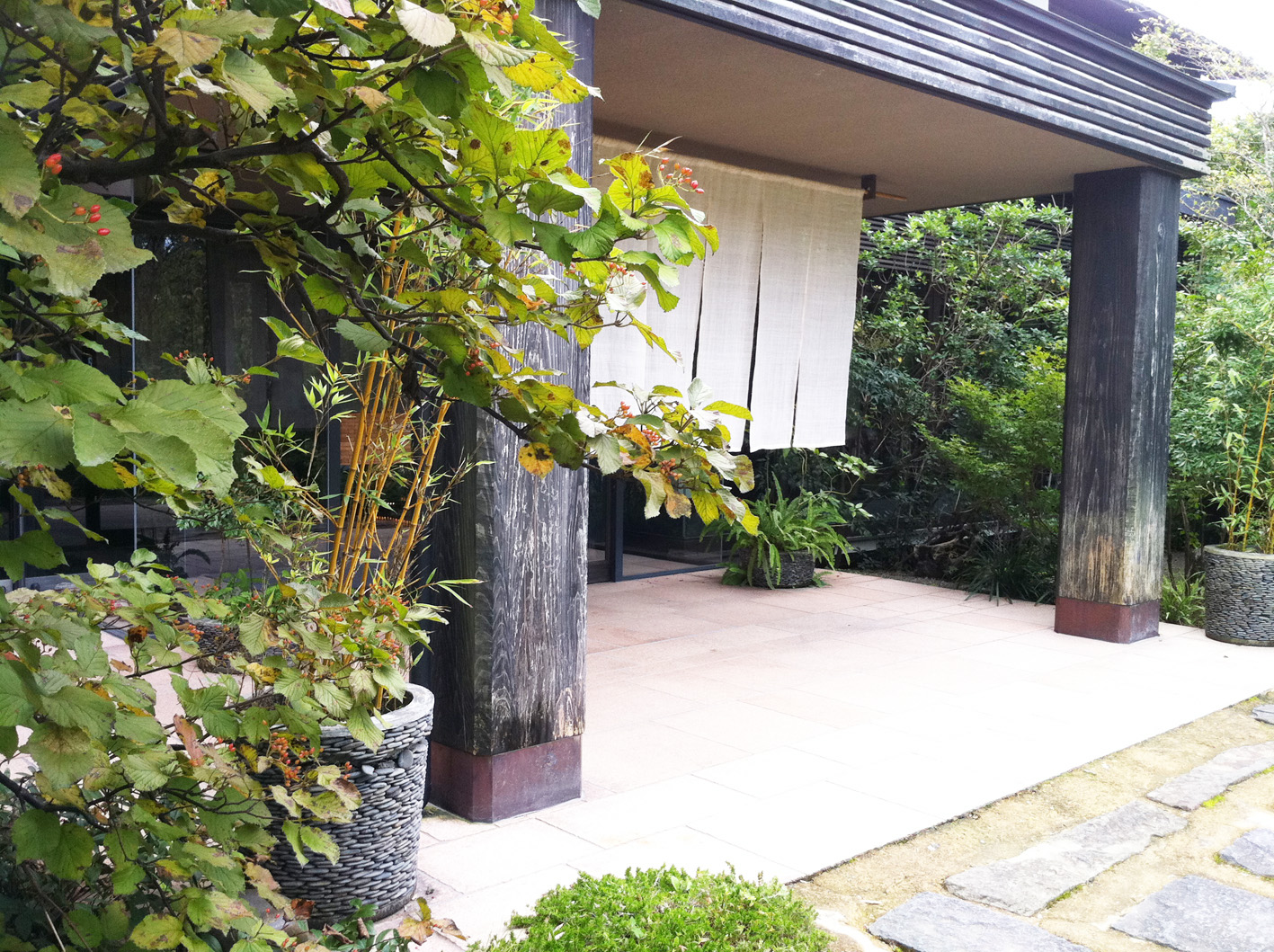 その後、旅館のお庭をちょこっと散歩。朝と夜ではぜんぜん雰囲気違います。